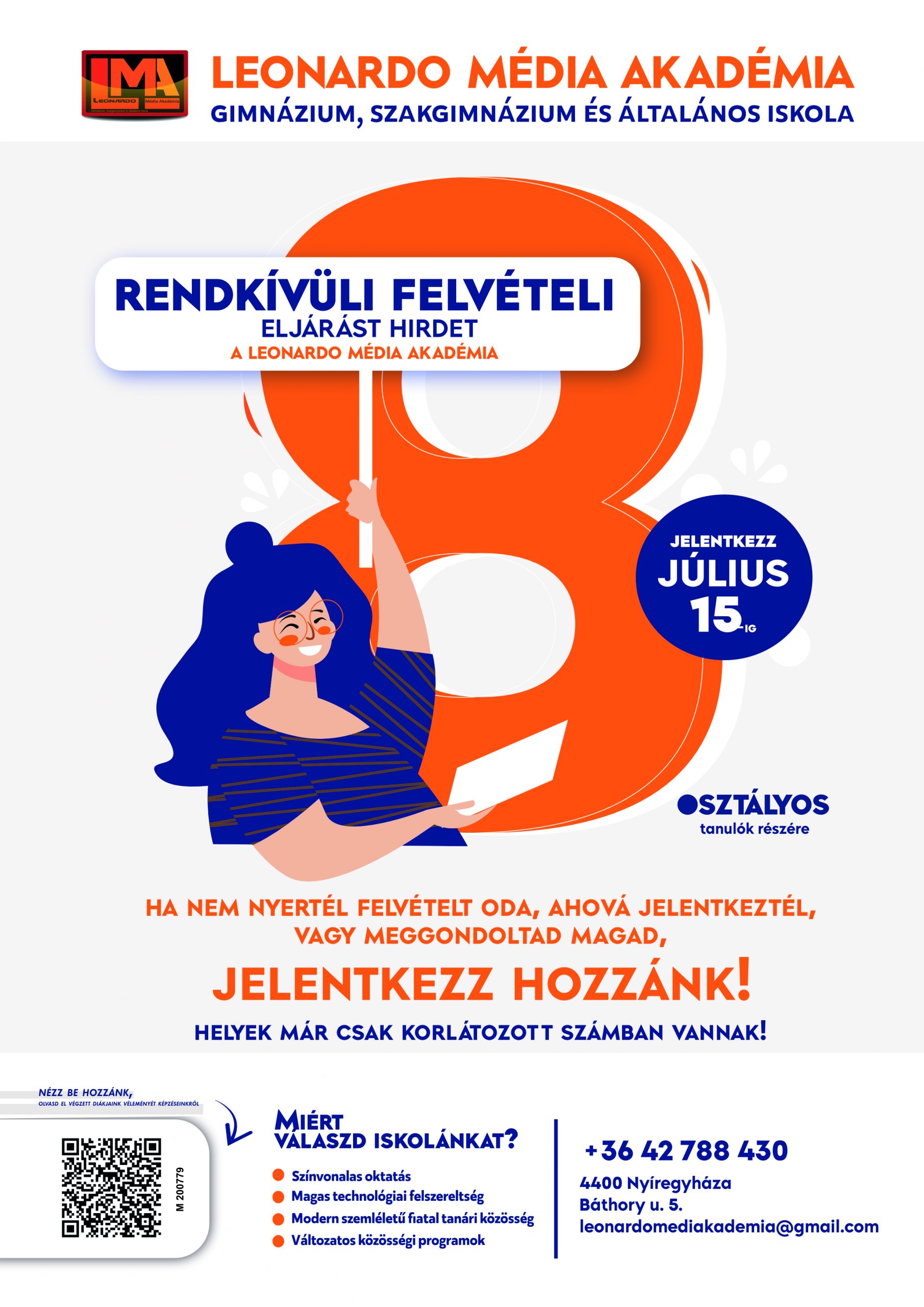 Ha nem nyertél felvételt oda, ahová jelentkeztél, vagy meggondoltad magad, jelentkezz hozzánk!